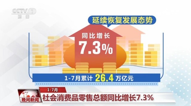 1—7月社會消費(fèi)品零售總額同比增長7.3%