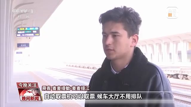 乘客 麥麥提敏 麥麥提江:之前我們來和田都是開車、坐汽車。時間很長很累,現(xiàn)在火車通了之后,給我們帶來很多方便,自動取票機可以取票,候車大廳不用排隊。