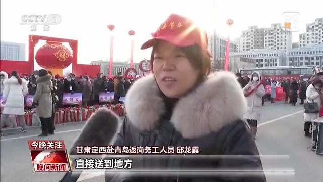 甘肅定西赴青島返崗務(wù)工人員 邱龍霞:專門有人員組織,直接送到地方,生活條件比較好,有大型的工廠,都可以在那個地方發(fā)展自己的強項。