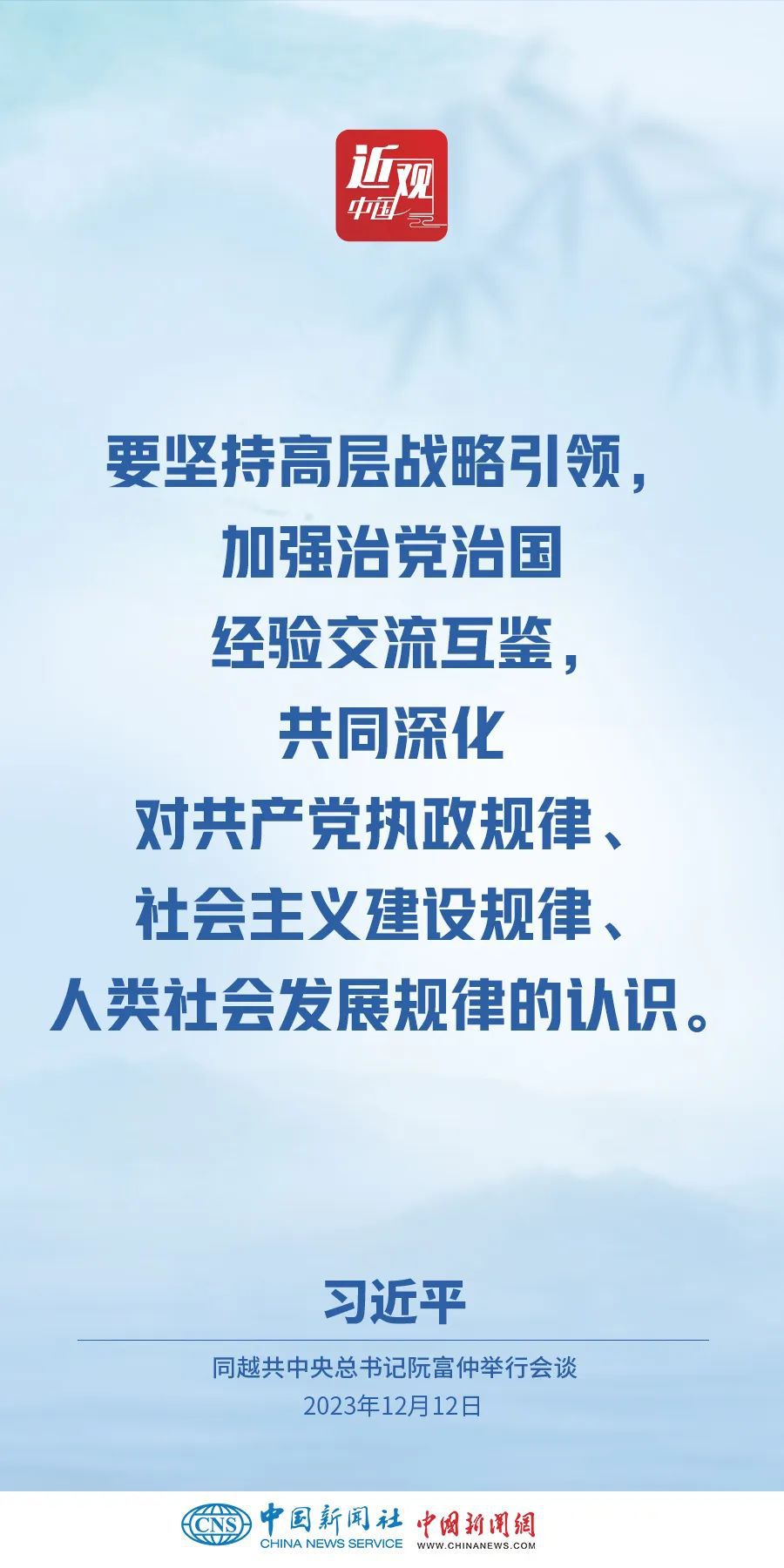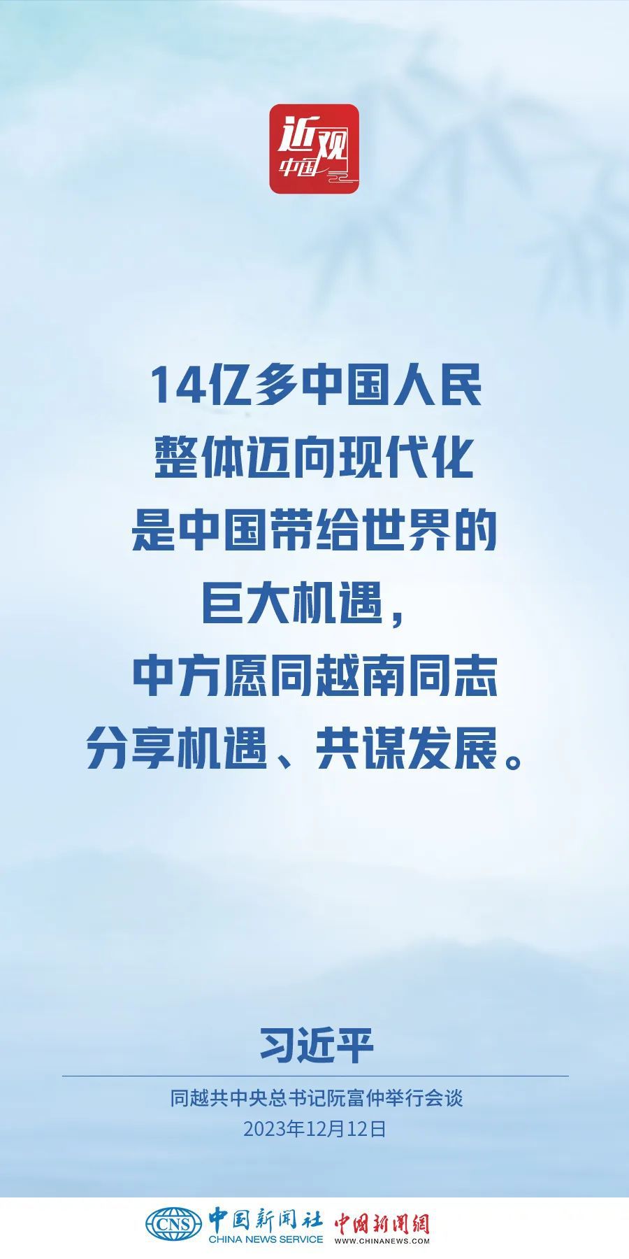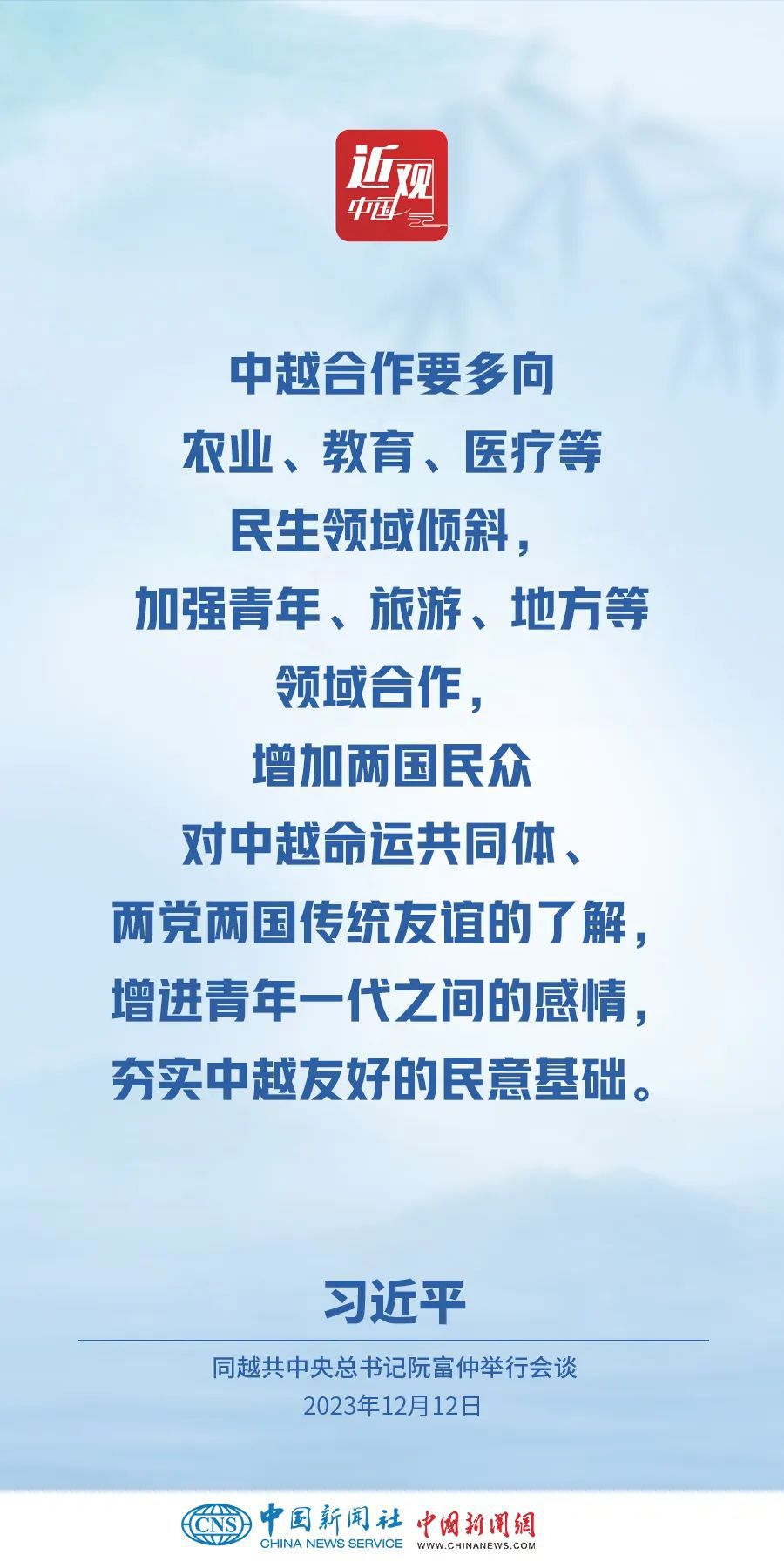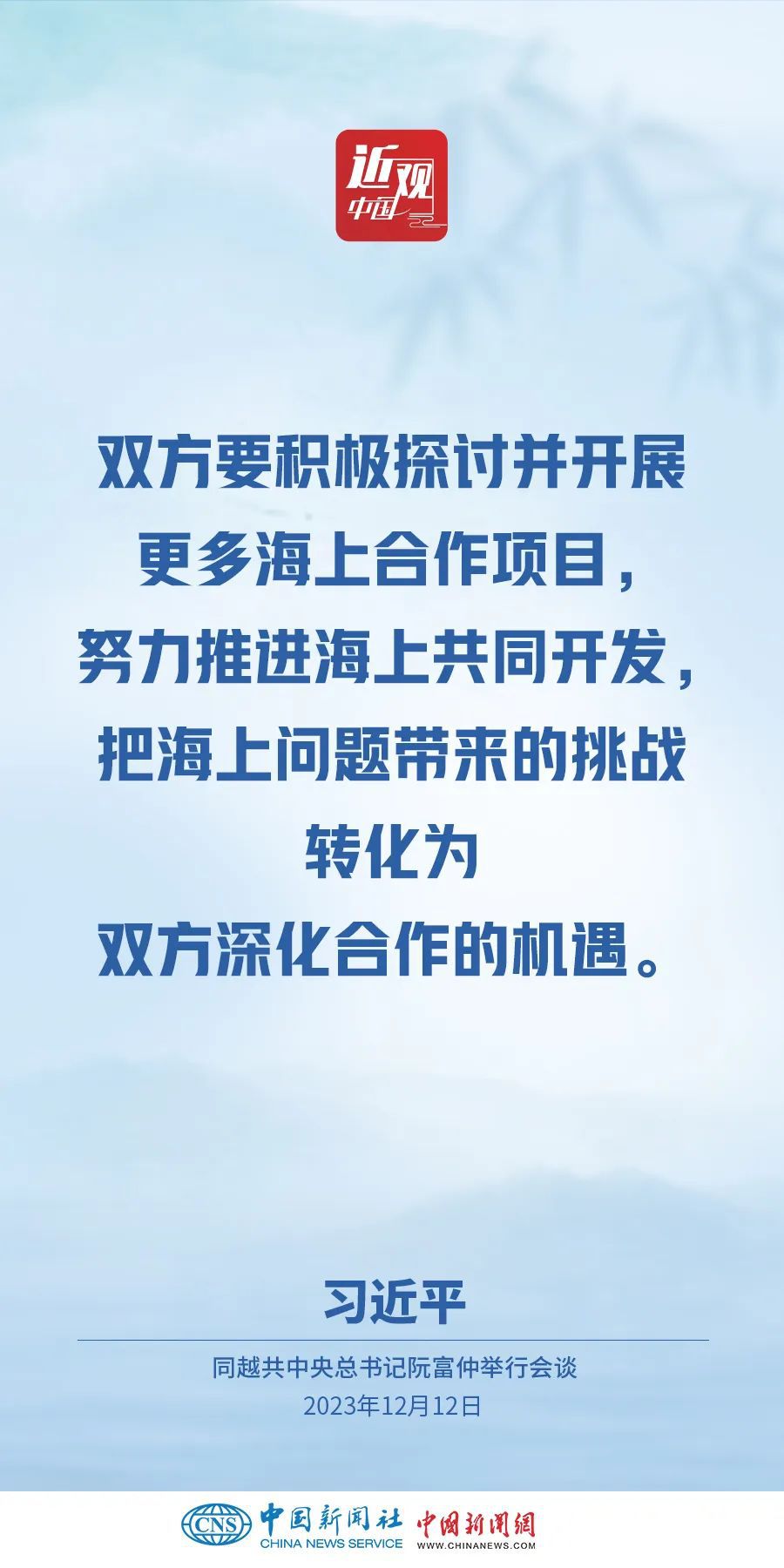 當(dāng)?shù)貢r間12月12日下午,剛剛抵達河內(nèi)的中共中央總書記、國家主席習(xí)近平在越共中央駐地同越共中央總書記阮富仲舉行會談。雙方宣布中越兩黨兩國關(guān)系新定位,在深化中越全面戰(zhàn)略合作伙伴關(guān)系基礎(chǔ)上,攜手構(gòu)建具有戰(zhàn)略意義的中越命運共同體。習(xí)近平指出——