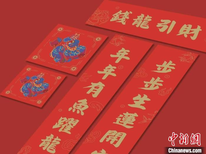 為迎接甲辰龍年,以傳統(tǒng)年畫“錢龍引進(jìn)”主體圖案為變體應(yīng)運而生的不僅有春聯(lián)、福字、紅包等,還有日歷、桌布、夜燈等生活用品,蘊含著年畫元素的文創(chuàng)產(chǎn)品近期銷售火爆,頗受年輕人喜愛。