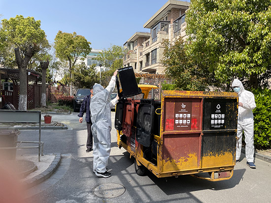 除了保安,保潔人員也缺位了。4月7日,姚書記找居委會(huì)要來(lái)十幾個(gè)垃圾桶,組織志愿者收集垃圾。因?yàn)?天沒收過(guò)垃圾,垃圾又多又臭。高杰、趙連均、俞衛(wèi)忠等志愿者沖在前面,他們一改平日“西裝革履”的打扮,化身“保潔員”,當(dāng)被問(wèn)及“4天不收的垃圾臭不臭”時(shí),他們笑笑說(shuō),“又臟又臭是真的,不過(guò)大家都換位思考,我們就收幾次而已,環(huán)衛(wèi)工人每天干才辛苦?!敝螅^(qū)每天就有鄰居輪流收垃圾,做到日產(chǎn)日清。一位鄰居在群里反映巡邏時(shí)發(fā)現(xiàn)路上落葉較多時(shí),大家又一呼百應(yīng),拿出自家的掃帚,一起把小區(qū)道路打掃干凈。