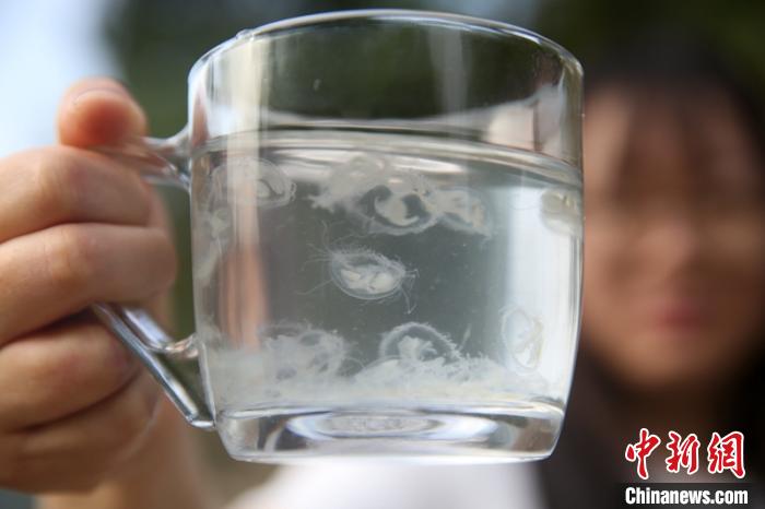 桃花水母游弋在四川省內(nèi)江市東興區(qū)平坦鎮(zhèn)姜家村蛟龍湖水庫?!√m自濤 攝