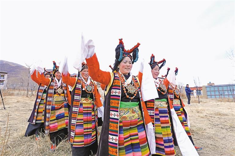 “如今,這支隊伍已發(fā)展到20多名成員,都是當(dāng)?shù)厝罕?。藝術(shù)隊經(jīng)常受邀參加各種大小晚會、重要節(jié)日演出和赴區(qū)內(nèi)外非遺展演等,其影響力和傳播力不斷提升,特別是甲瑪諧欽《和親路》受到廣泛歡迎。”甲瑪鄉(xiāng)工作人員德吉卓嘎說。