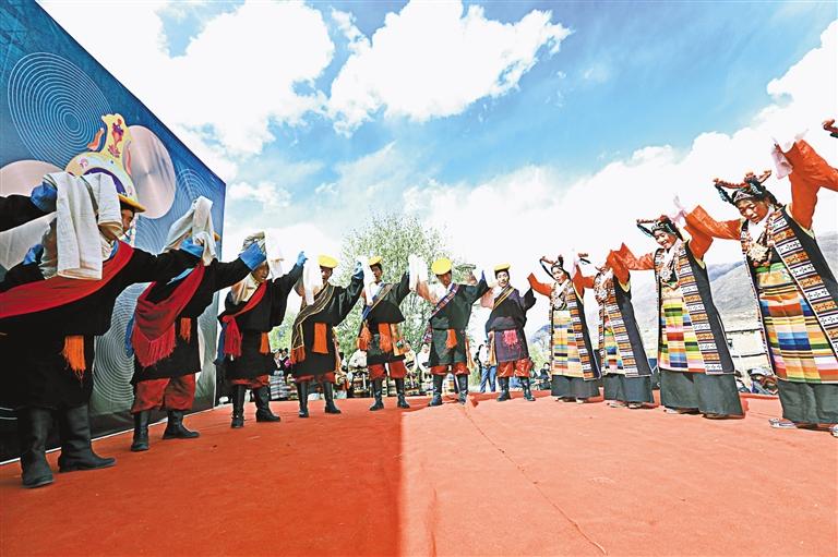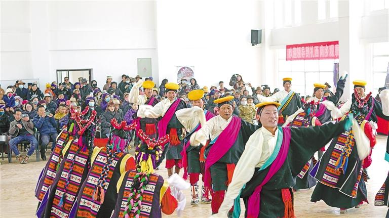 甲瑪鄉(xiāng)諧欽隊在非遺巡展活動上表演諧欽。