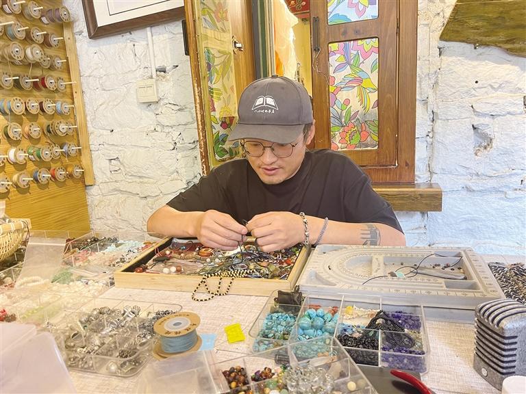 在拉薩堯西平康古建大院,院落里的回廊、房間都被賦予了新的生命。漫步其間,咖啡店的醇香氣息、藝術(shù)工作室的靈感碰撞……共同編織出一幅多元的生活畫卷。在這片充滿活力的古建院落中,成立于2021年的物喜手工工作室,以其個(gè)性化的手工銀飾和深厚的文化內(nèi)涵,吸引著越來越多年輕人的目光。