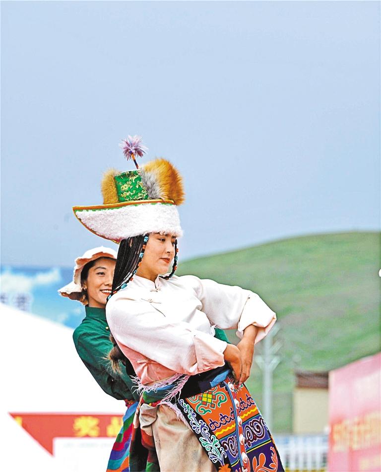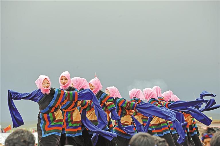 圖為安多縣群眾在那曲市11縣區(qū)文藝調(diào)演比賽中表演。