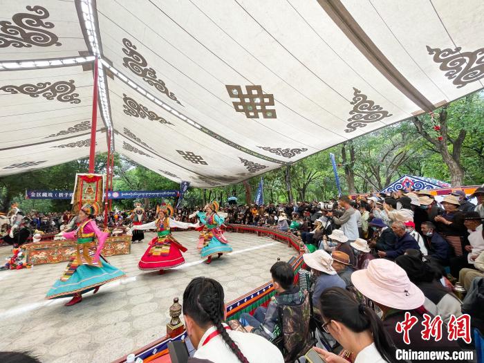 今年雪頓節(jié)期間羅布林卡上演藏戲。中新社記者 趙朗 攝