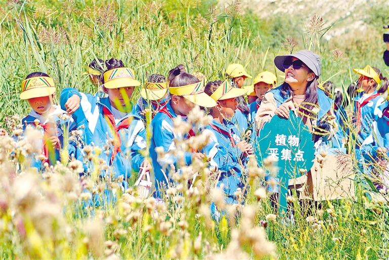 圖為8月15日,專業(yè)老師帶領(lǐng)小學(xué)生們在拉魯濕地觀察、采集植物樣品。 記者 格桑倫珠 攝