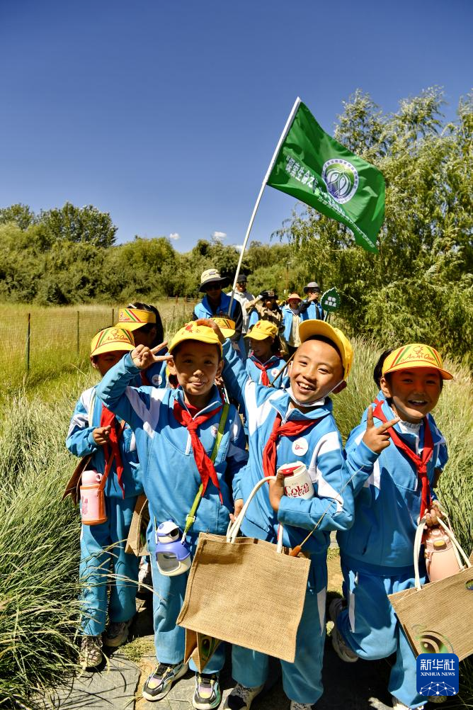 8月15日,拉魯小學(xué)的學(xué)生們?cè)诶敐竦貒?guó)家級(jí)自然保護(hù)區(qū)開(kāi)展生態(tài)科普研學(xué)活動(dòng)。新華社記者 張汝鋒 攝 ??