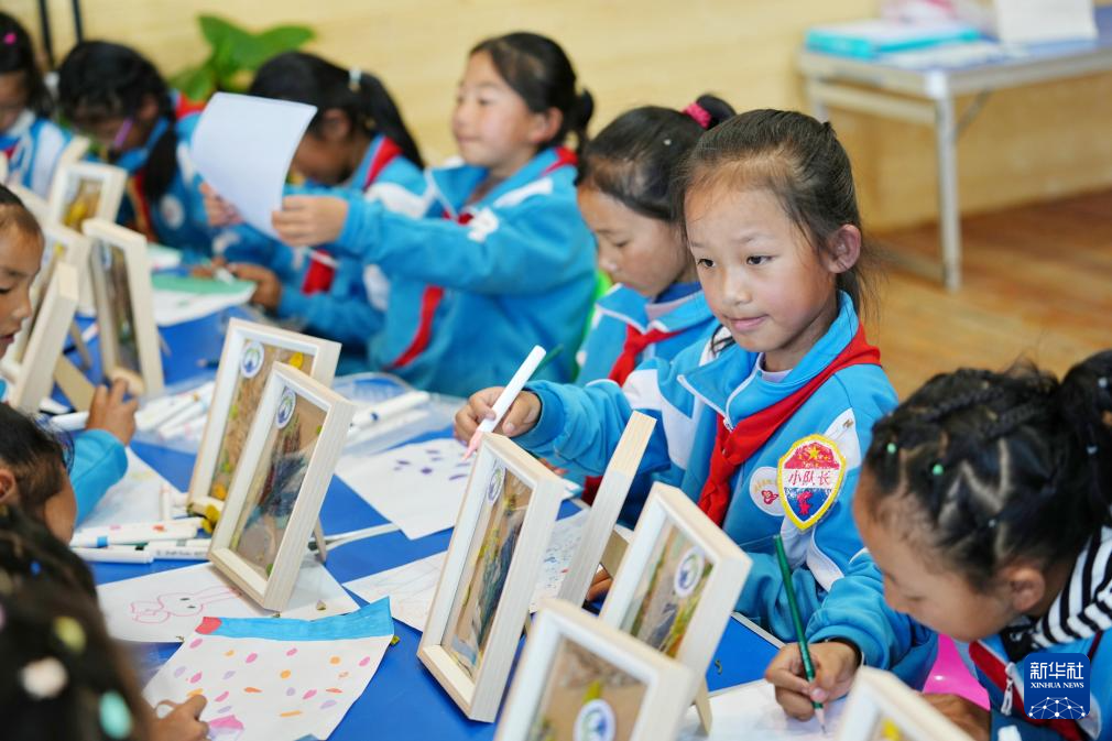 8月15日,拉魯小學(xué)的學(xué)生在拉魯濕地國(guó)家級(jí)自然保護(hù)區(qū)管理局科普小教室里進(jìn)行生態(tài)主題繪畫(huà)。新華社記者 張汝鋒 攝 ??
