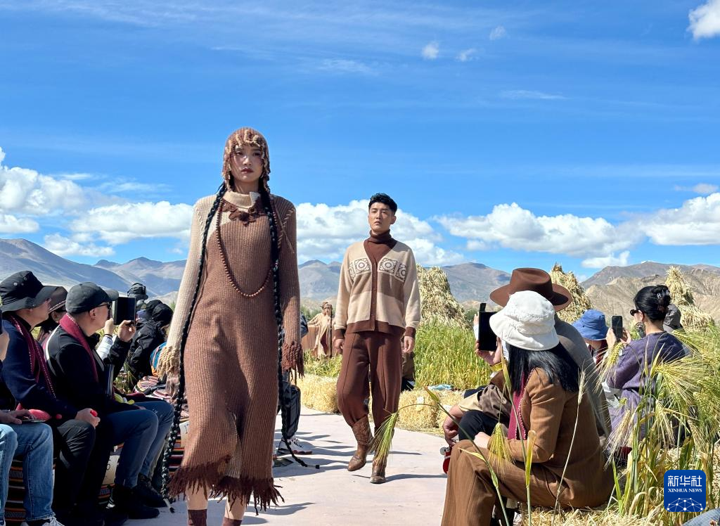 高原山腳下、青稞麥浪中,氆氌搖身一變成為時(shí)尚服飾,在海拔約4000米的秀場(chǎng)上吸引了現(xiàn)場(chǎng)中外嘉賓和線上觀眾的關(guān)注。9月8日,一場(chǎng)以“雪域·交響”為主題的發(fā)布秀在西藏江孜縣班覺倫布村舉行,現(xiàn)場(chǎng)不僅有身著氆氌時(shí)裝的專業(yè)模特現(xiàn)場(chǎng)走秀,還有30位氆氌手工匠“阿佳”(藏語意為大姐)在T臺(tái)旁展示梳毛捻線等工序,氆氌紡織機(jī)聲與鋼琴獨(dú)奏交錯(cuò)相生。