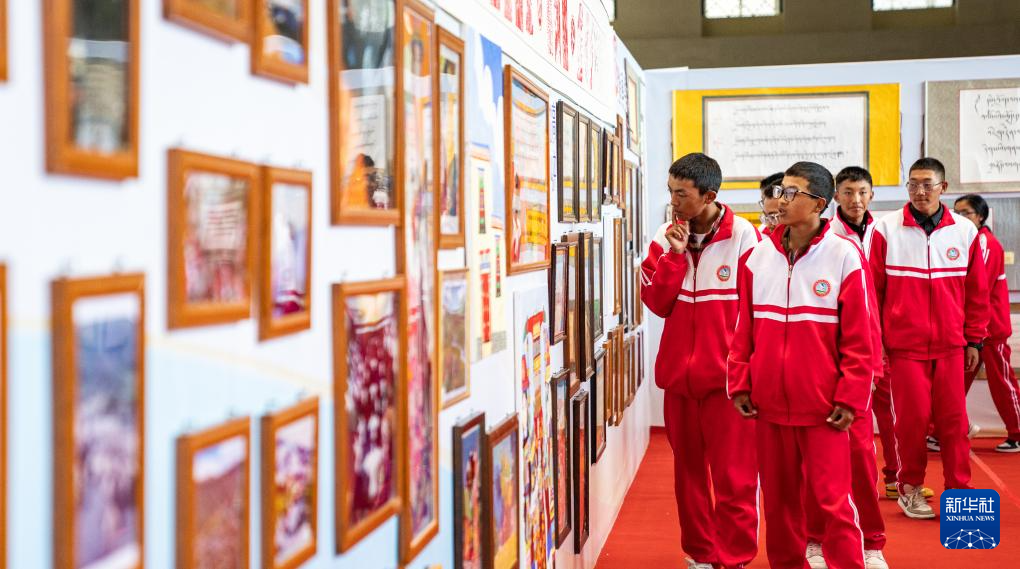 學生在西藏首屆中小學生藝術(shù)展演活動獲獎作品展廳內(nèi)參觀(9月25日攝)。新華社記者 丁增尼達 攝