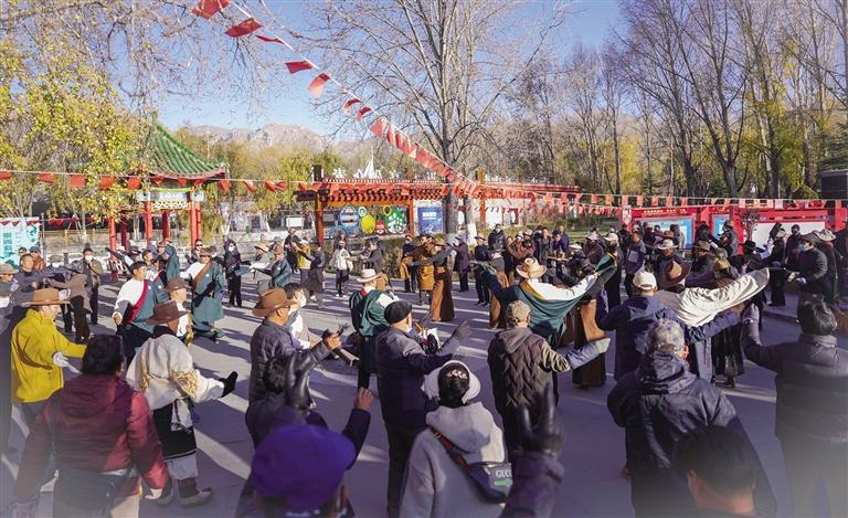 鍋莊舞有著濃厚的民族色彩,而廣場(chǎng)舞與鍋莊舞的結(jié)合,能很好地呈現(xiàn)地域特色?!拔沂悄瓿跻?yàn)楣ぷ髡{(diào)動(dòng)來(lái)的拉薩,以前我一直以為只有在過(guò)年或重要的節(jié)日,去村里或者農(nóng)牧區(qū)才能看到鍋莊舞,沒(méi)想到小區(qū)附近的廣場(chǎng)每天都有很多人跳。”來(lái)自四川的張鳳鳳說(shuō)。