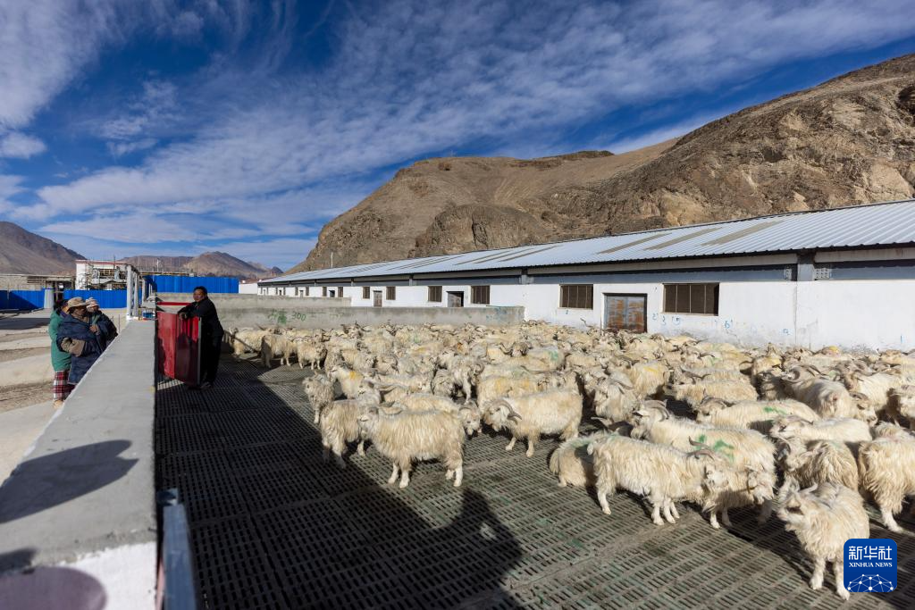日土縣白絨山羊原種場的職工在照看良種羊(11月16日攝)。新華社記者 姜帆 攝 ??
