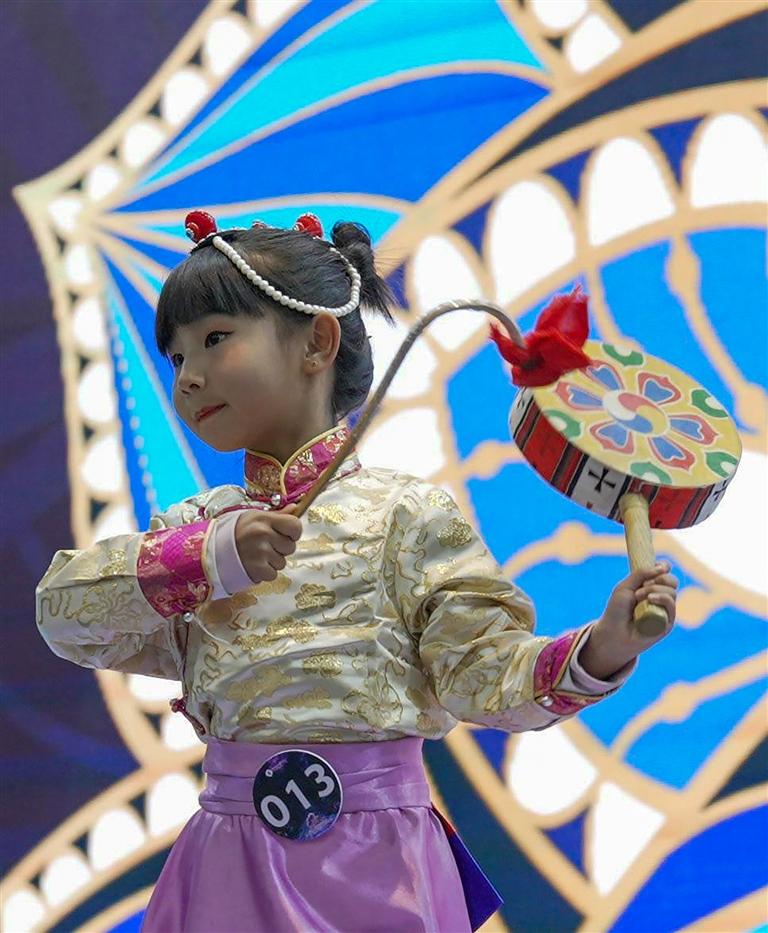 初賽現(xiàn)場,小選手們身著華麗的藏族服飾,隨著音樂的節(jié)奏翩翩起舞。他們每一個(gè)動(dòng)作都充滿了力量與美感,將熱巴舞的歡快與熱情表現(xiàn)得淋漓盡致。其中,一位名叫馮詩雅的8歲漢族女孩尤為引人注目。她生動(dòng)的表情和自信的舞臺(tái)表現(xiàn)力,贏得了現(xiàn)場觀眾的掌聲和評(píng)委的高度評(píng)價(jià)。