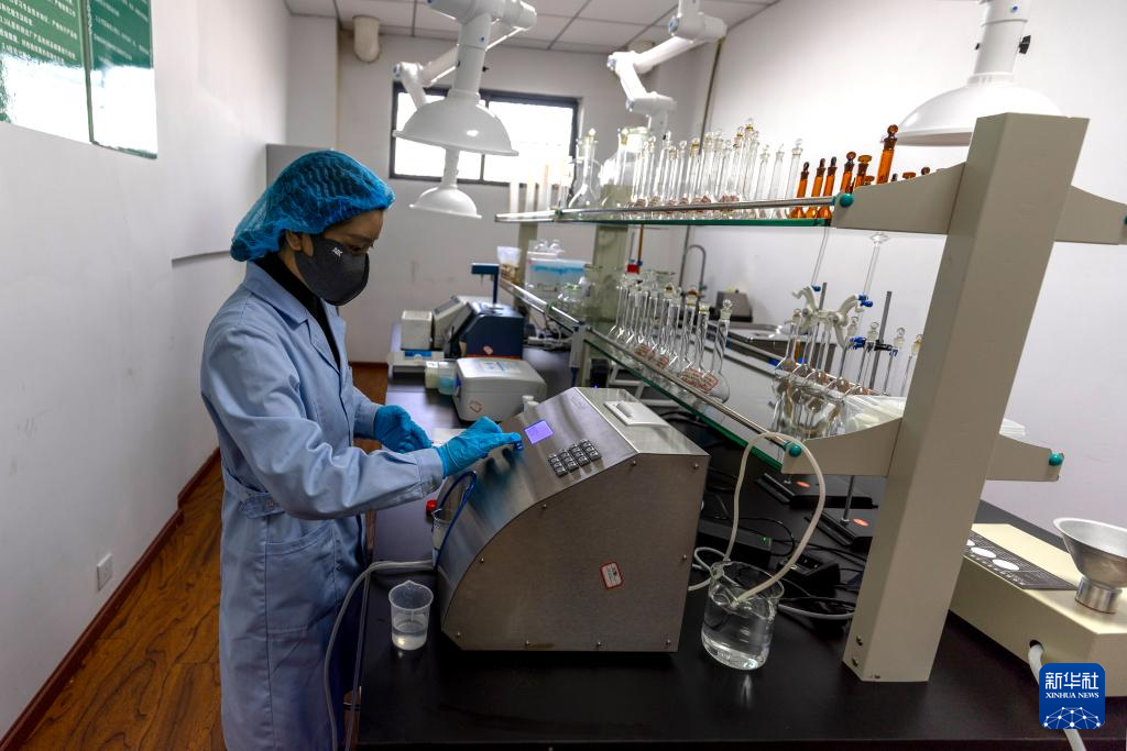 11月28日,質(zhì)量檢測(cè)人員桑吉在實(shí)驗(yàn)室檢測(cè)產(chǎn)品質(zhì)量。新華社記者 姜帆 攝