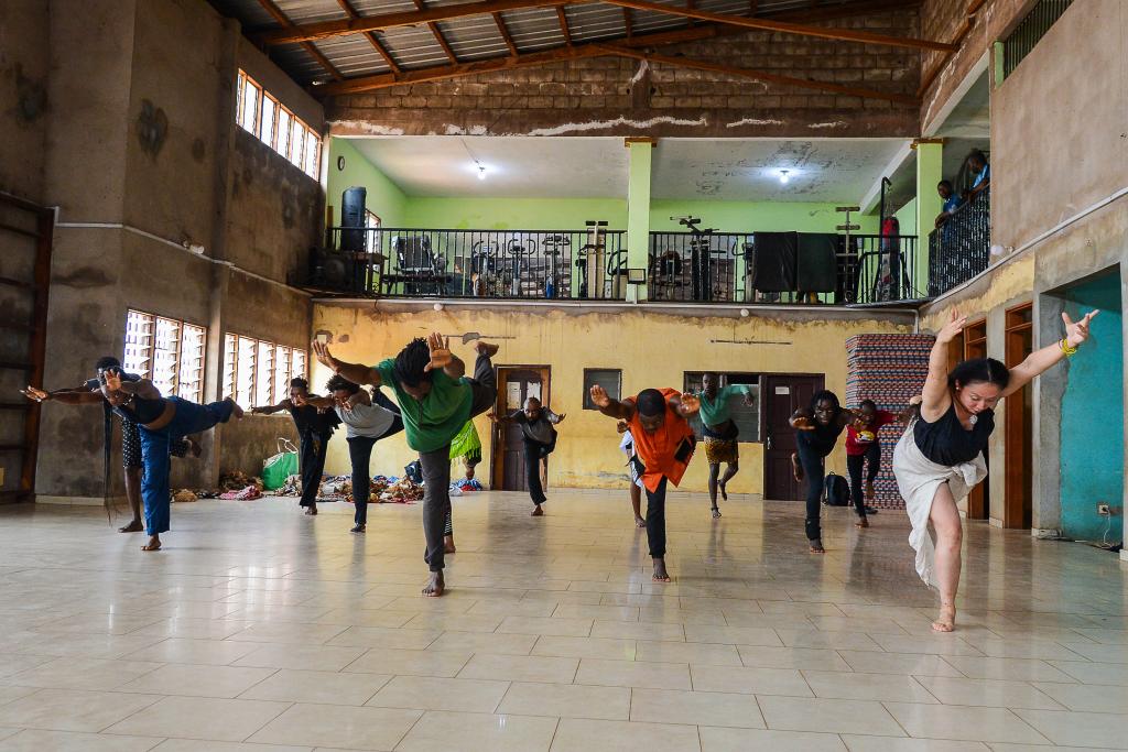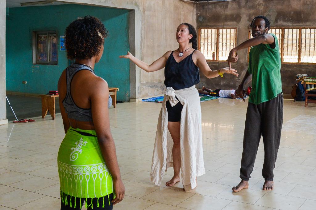 為了讓沒有任何專業(yè)基礎(chǔ)的喀麥隆學生們理解現(xiàn)代舞,娜爾斯和蔣可鈺還想到用中國太極和源于印度的瑜伽,向?qū)W員們講解太極圓弧運動和道家哲學思想,讓學生們領(lǐng)會中國太極和東方文化的思想內(nèi)涵,催化了中非古老文化的融合。