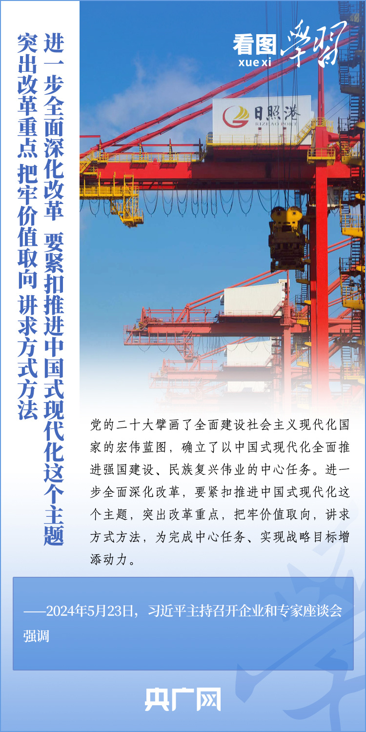 改革是發(fā)展的動力。5月23日,習(xí)近平總書記在山東濟(jì)南主持召開企業(yè)和專家座談會并發(fā)表重要講話??倳洀?qiáng)調(diào),進(jìn)一步全面深化改革,要緊扣推進(jìn)中國式現(xiàn)代化這個主題,突出改革重點,把牢價值取向,講求方式方法,為完成中心任務(wù)、實現(xiàn)戰(zhàn)略目標(biāo)增添動力。一起來學(xué)習(xí)!