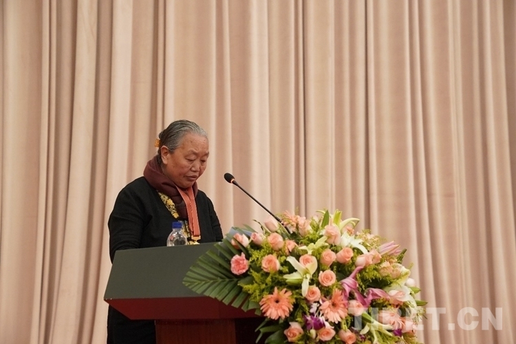 圖為會(huì)議現(xiàn)場(chǎng)西藏奇正藏藥股份有限公司董事長(zhǎng)雷菊芳發(fā)言 攝影:王淑