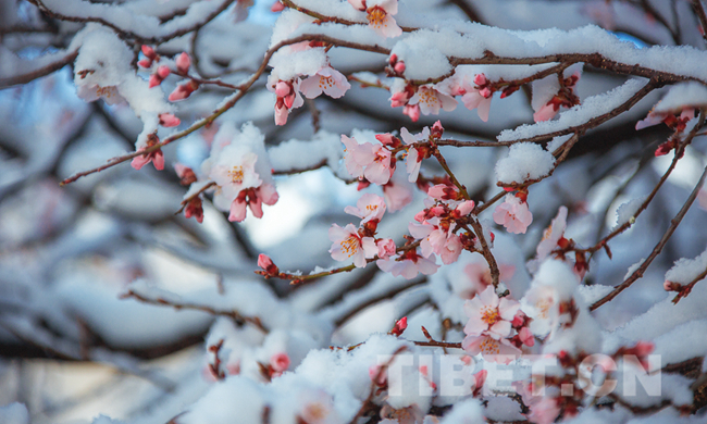 中國(guó)西藏網(wǎng)訊 近日來(lái),當(dāng)朋友圈被西藏林芝盛開(kāi)的桃花瘋狂刷屏之際。在海拔3650米的拉薩,一場(chǎng)雪在一夜間悄然把拉薩銀裝素裹。拉薩市北郊山坡上的帕崩崗數(shù)十棵遒勁的野生山桃樹(shù)已經(jīng)吐露花蕊,桃花在白雪的映襯下,愈發(fā)鮮艷動(dòng)人。(中國(guó)西藏網(wǎng) 圖、文/趙耀)