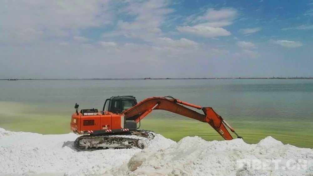 圖為察爾汗鹽湖湖畔正在工作的挖掘機(jī) 攝影:劉莉