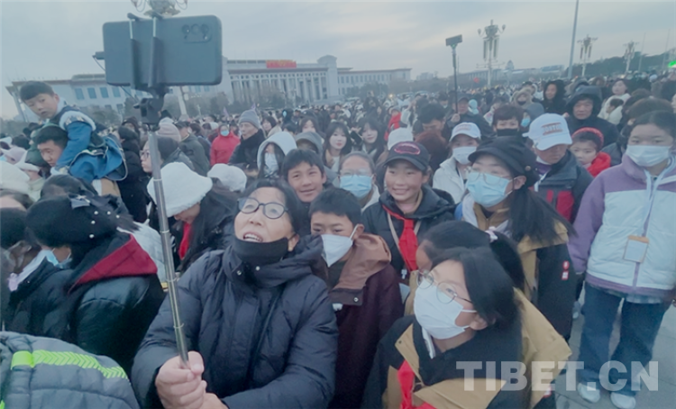 中國西藏網(wǎng)訊 “我們來自西藏,我在天安門廣場看升旗,特別激動,特別開心,特別感動!”來自西藏自治區(qū)日喀則市邊境縣學生赴北京參觀研學的22名學生激動地擠進老師的手機鏡頭高聲喊著。