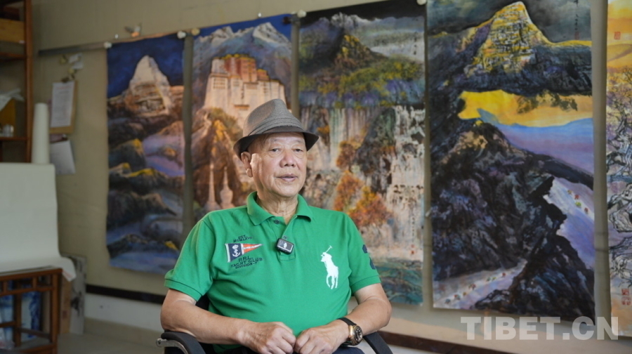 尼瑪澤仁:如果看到這幾幅畫(huà),肯定會(huì)感覺(jué)跟其他山水畫(huà)不一樣,因?yàn)槲疫\(yùn)用了艷麗的色彩去形成強(qiáng)烈的對(duì)比。我想通過(guò)這樣的色彩,有別于江南的秀麗,展現(xiàn)出雪域高原獨(dú)特的山水。這里面飽含著熱情,山體會(huì)沖擊你的視野,會(huì)打動(dòng)你的心靈,給予你靈魂上的震撼。