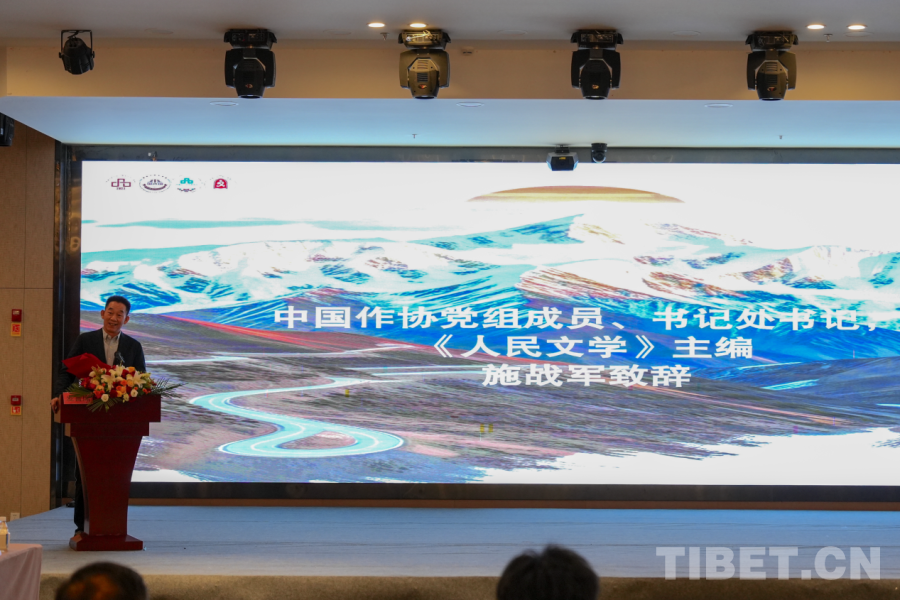 圖為長詩《喜馬拉雅》作者,第八屆魯迅文學獎獲得者、西藏自治區(qū)文聯(lián)副主席陳人杰致辭 攝影:邊子捷