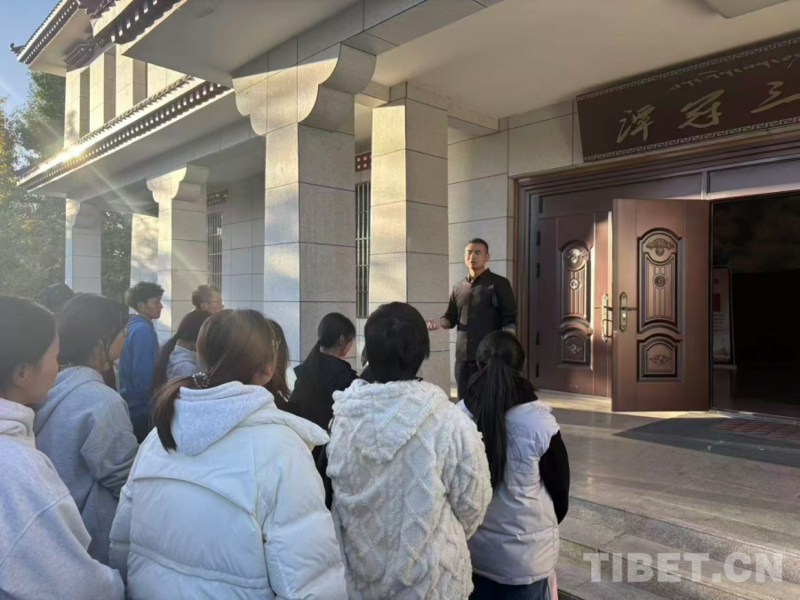 圖為張艾平帶領(lǐng)學(xué)生在西藏自治區(qū)日喀則市江孜縣帕拉莊園研學(xué)