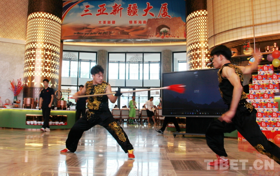 中國西藏網(wǎng)訊 精彩的傳統(tǒng)武術(shù)、悠揚(yáng)的歌聲、優(yōu)美的舞蹈……一陣陣掌聲、笑聲、歡呼聲從新疆代表團(tuán)駐地海南三亞新疆大廈傳出。11月27日,新疆代表團(tuán)邀請湖南、云南、黑龍江代表團(tuán)來到駐地舉行主題為“交各民族好朋友”的聯(lián)誼活動。