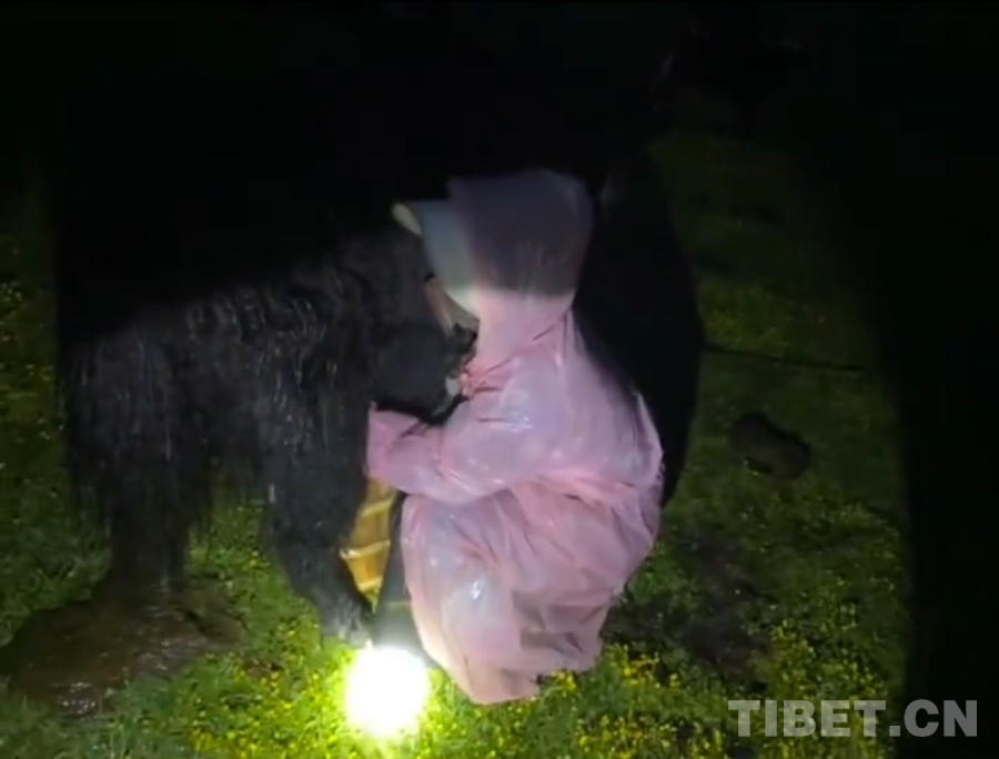 到了牛圈里,我發(fā)現(xiàn)大部分的牦牛都把腦袋斜靠在自己的肚子旁,閉著眼睛睡覺呢。我想很多人都沒見過牦牛睡覺的畫面吧?它們睡覺不是站著,而是躺下后前后腿全部收緊,把自己裹成一團(tuán),頭不是往前伸著,而是斜著貼緊自己的身體。過了一會(huì)兒,似乎是小牛犢們意識(shí)到了自己馬上就可以喝到媽媽的奶了,牛圈里開始傳來此起彼伏的叫聲;另一邊的牛媽媽們也開始作出回應(yīng)。雖然在我聽來都是同一種叫聲,但在它們那兒似乎有著完全不一樣的意義。這是屬于它們自己的“加密語”。就這樣,在一聲聲“哞——哞——”的叫聲中,我們開始了今天的工作。