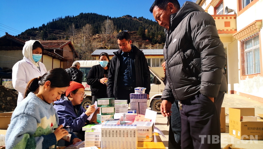 圖為醫(yī)療專家前往四川省阿壩藏族羌族自治州若爾蓋縣為患者發(fā)放藥品 攝影:劉莉