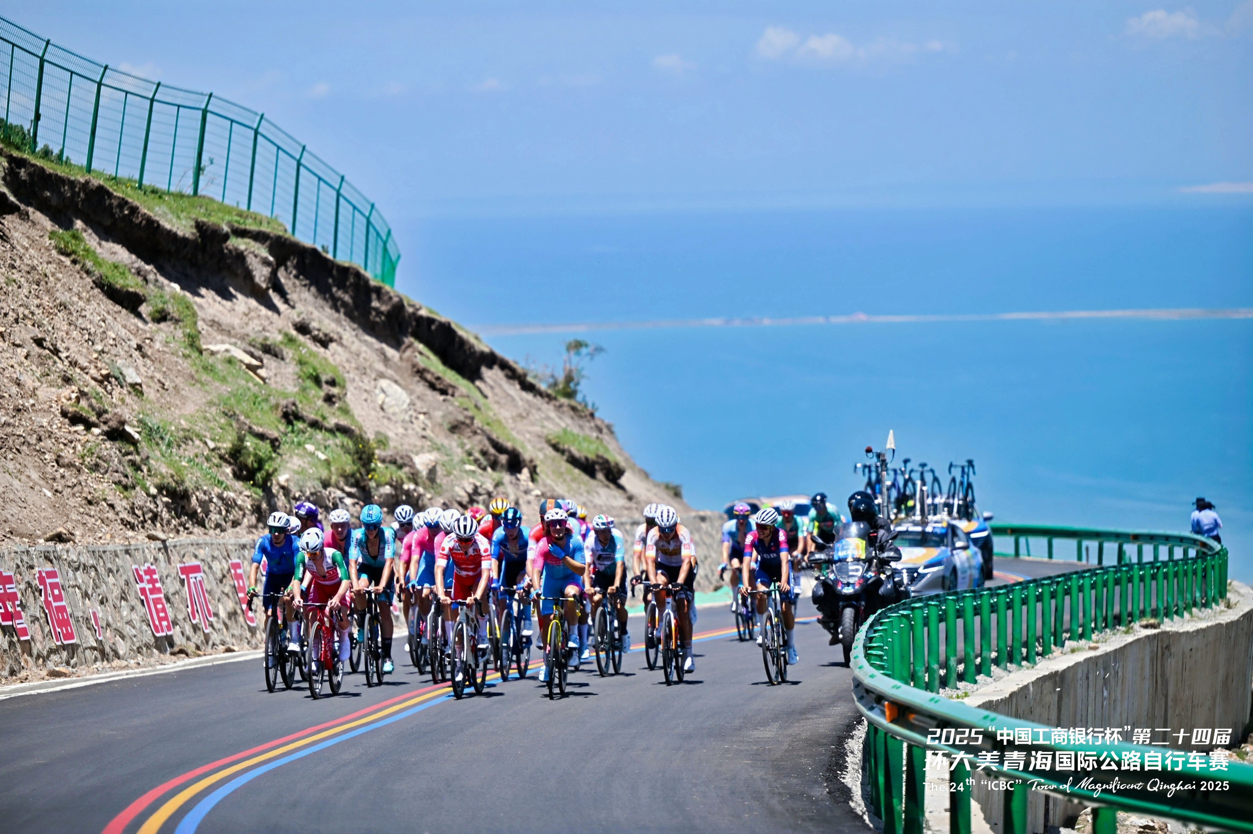 第二十四屆環(huán)青賽第六賽段——剛察-共和賽段,是本屆賽事距離最長的賽段。車隊出發(fā)后不久便駛?cè)胫沫h(huán)湖公路,這段標(biāo)志性賽程承載著環(huán)青海湖賽事的精髓和回憶。作為環(huán)青賽的前身,環(huán)湖賽段以其獨特魅力吸引著全球騎行愛好者,人們沿著賽事路線打卡騎行,盡情領(lǐng)略青海湖畔的壯美風(fēng)光。