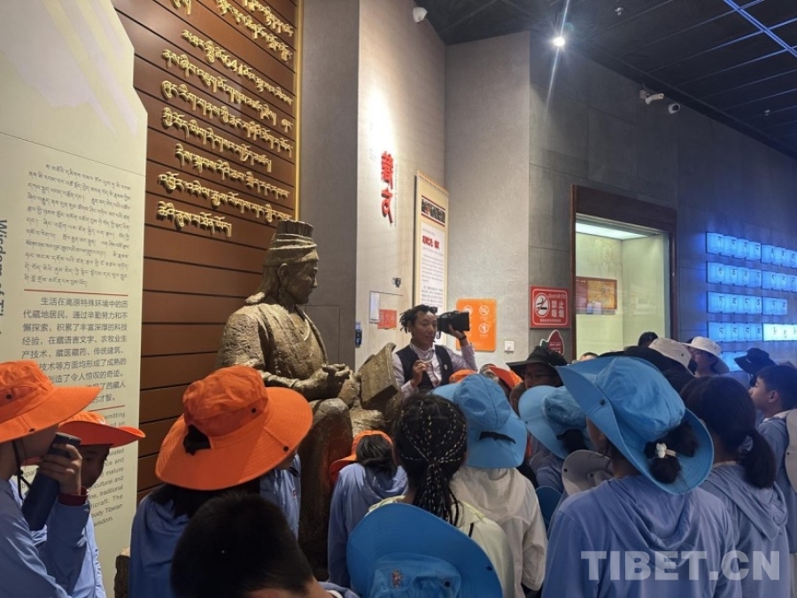 開營儀式后,小營員們在科普輔導(dǎo)員洛桑平措的帶領(lǐng)下,迫不及待地探秘博物館展廳。從壯闊的高原地質(zhì)演變到神奇的自然風(fēng)光,從豐富的生物種類到精妙的生態(tài)系統(tǒng),豐富的展品和生動(dòng)的展示讓孩子們大開眼界,對腳下的這片土地有了更深的認(rèn)同感。