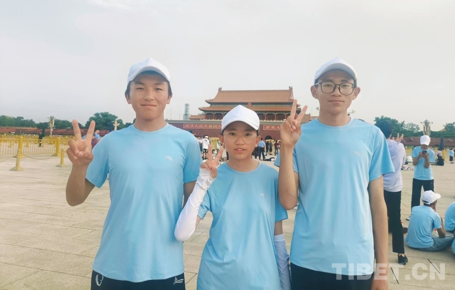 圖為參加“山河同脈·京華筑夢(mèng)”研學(xué)活動(dòng)的西藏日喀則定日縣中學(xué)生達(dá)娃次仁(左)、旦增桑旦(中)和古入曲桑(右)在天安門廣場(chǎng)上 攝影:趙釗