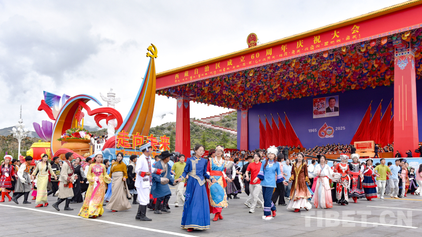中國西藏網(wǎng)訊 8月21日上午,西藏自治區(qū)成立60周年慶祝大會在拉薩隆重舉行。慶祝大會舉行充滿吉祥喜慶氣氛的盛大群眾游行。游行分為“旗幟引領”“四件大事”“奮進新時代”“走向未來”4個單元,26個群眾游行方隊、彩車,在歡快的音樂中依次行進。各族群眾身著絢麗多彩的服飾,跳起熱情歡快的舞蹈,表達過上幸福生活的喜悅之情、對黨和國家的感恩之情。(中國西藏網(wǎng) 記者/王淑 趙振宇 德吉卓瑪 次旦拉姆 旦曲 賈華加 趙釗 姚浩然 劉莉 邊子捷 馮重霖 楊眉笑)