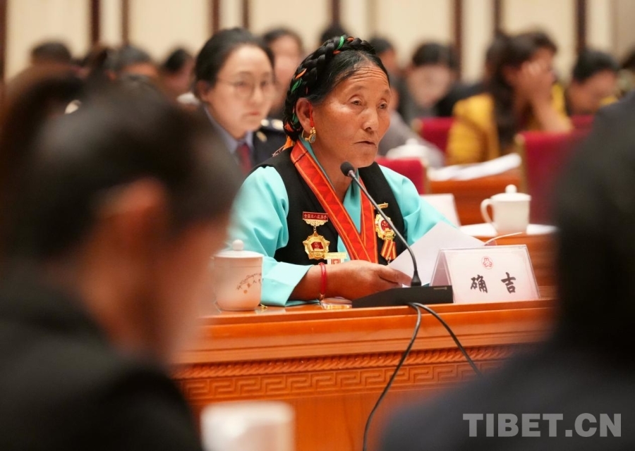 圖為拉薩市倉(cāng)姑寺寺管會(huì)副主任次成拉姆發(fā)言