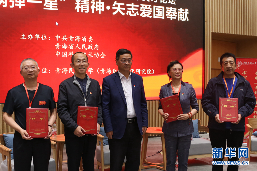 青海民族大學黨委書記薛建華為青海紅色文化研究院特聘研究員頒發(fā)聘書。新華網(wǎng) 卡婭梅朵 攝