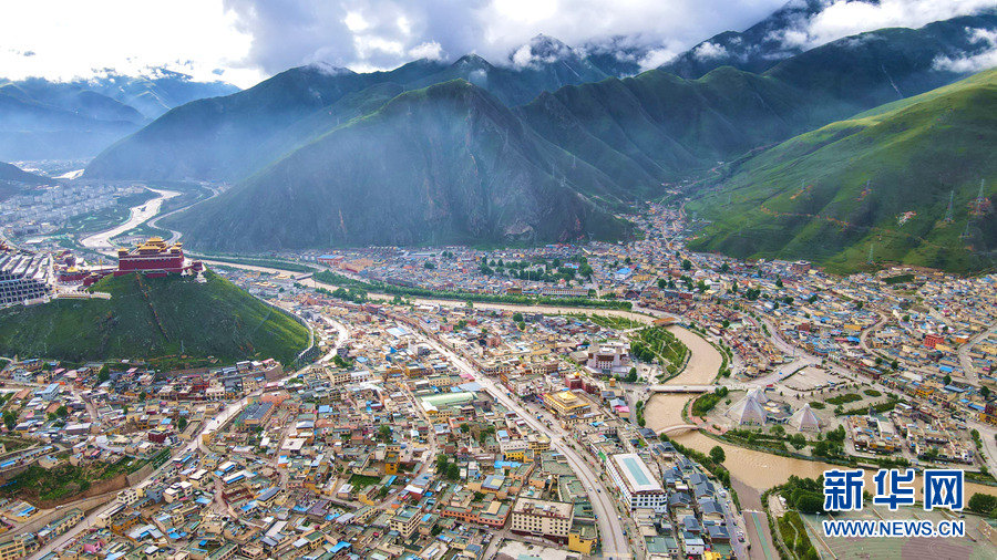 航拍青海省玉樹藏族自治州玉樹市。(2020年6月18日攝)新華網(wǎng) 潘彬彬攝