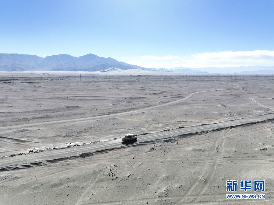 2月5日,青藏集團(tuán)有限公司西寧供電段格爾木檢修車(chē)間工長(zhǎng)王永忠與同事駕車(chē)前往變電所進(jìn)行巡檢(無(wú)人機(jī)照片)。新華社記者 張龍 攝