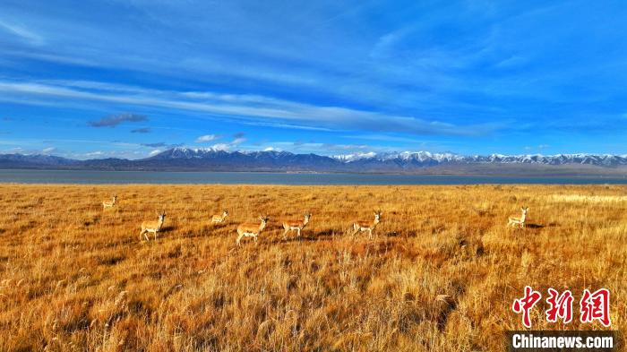 圖為鵝喉羚群在濕地公園漫步。 海西州融媒體中心供圖