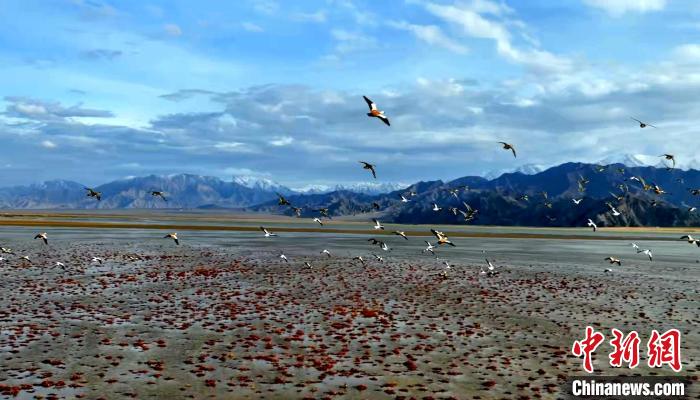 圖為多種野生鳥(niǎo)類(lèi)在濕地公園上空飛翔。 海西州融媒體中心供圖