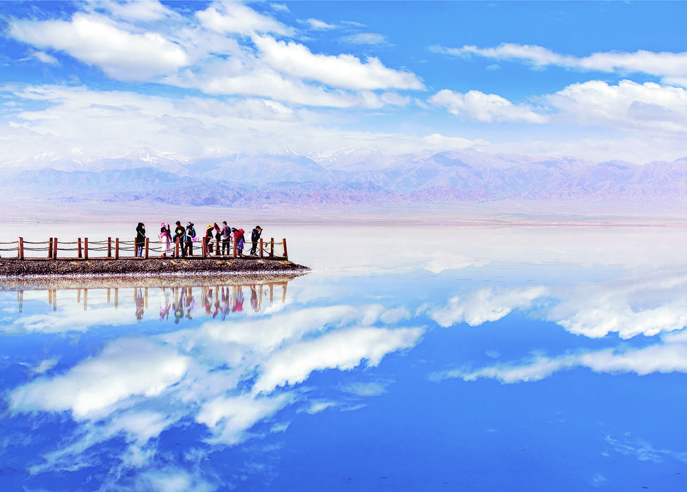 景區(qū)綠化面積達到4.5萬平方米、濕地栽植面積達10.1萬平方米、平整土地16.4萬平方米……隨著一系列措施落地生效,茶卡鹽湖生態(tài)環(huán)境持續(xù)向好,階段性生態(tài)效應(yīng)正在顯現(xiàn)。徜徉在鹽湖深處——云,觸手可及;水,共天一色,人與自然構(gòu)成一幅美不勝收的和諧畫卷!