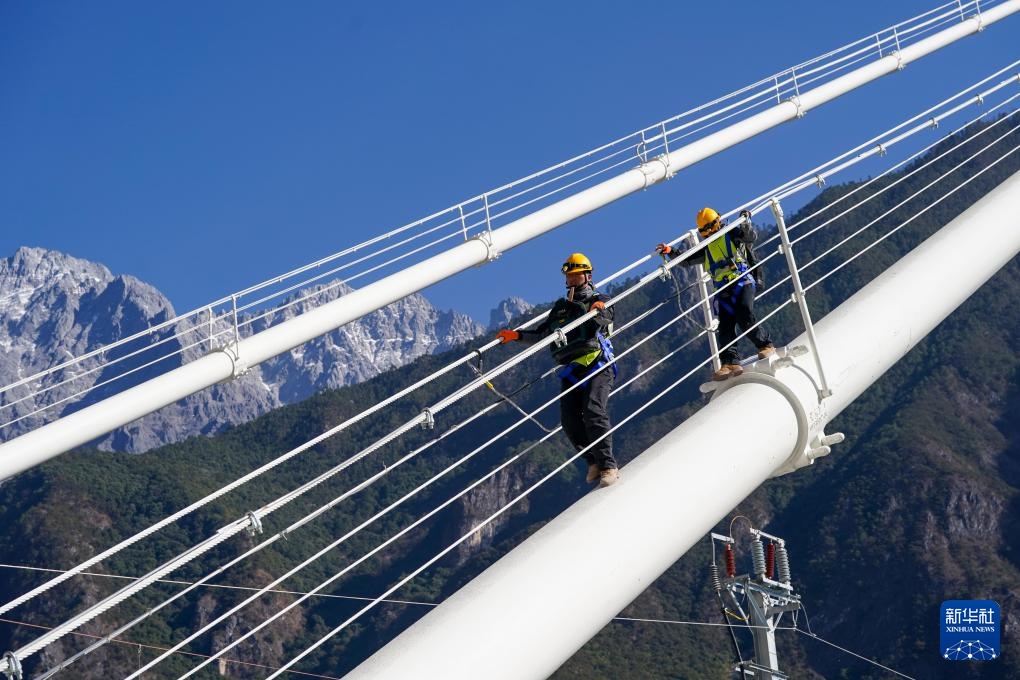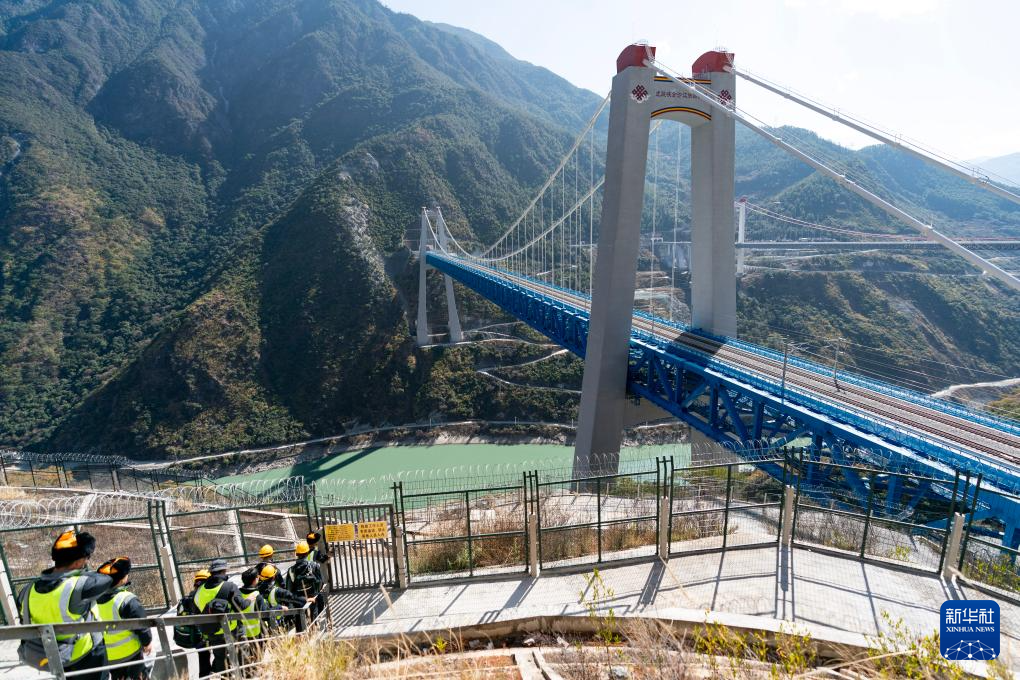 云南麗江至香格里拉鐵路(麗香鐵路)即將迎來(lái)開通后的首個(gè)春運(yùn),為確保旅客平安出行,國(guó)鐵昆明局廣通工電段新尚綜合維修工區(qū)班對(duì)虎跳峽金沙江鐵路大橋進(jìn)行全面“體檢”。