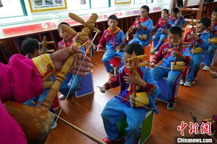 2023年6月21日,德欽縣第一小學(xué)的學(xué)生們在練習(xí)藏族傳統(tǒng)樂器弦子。中新社記者 劉冉陽 攝