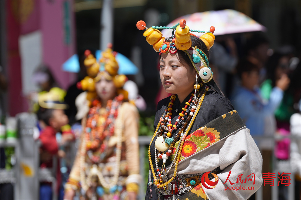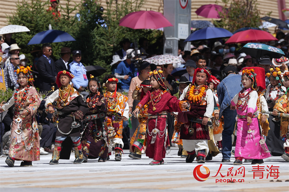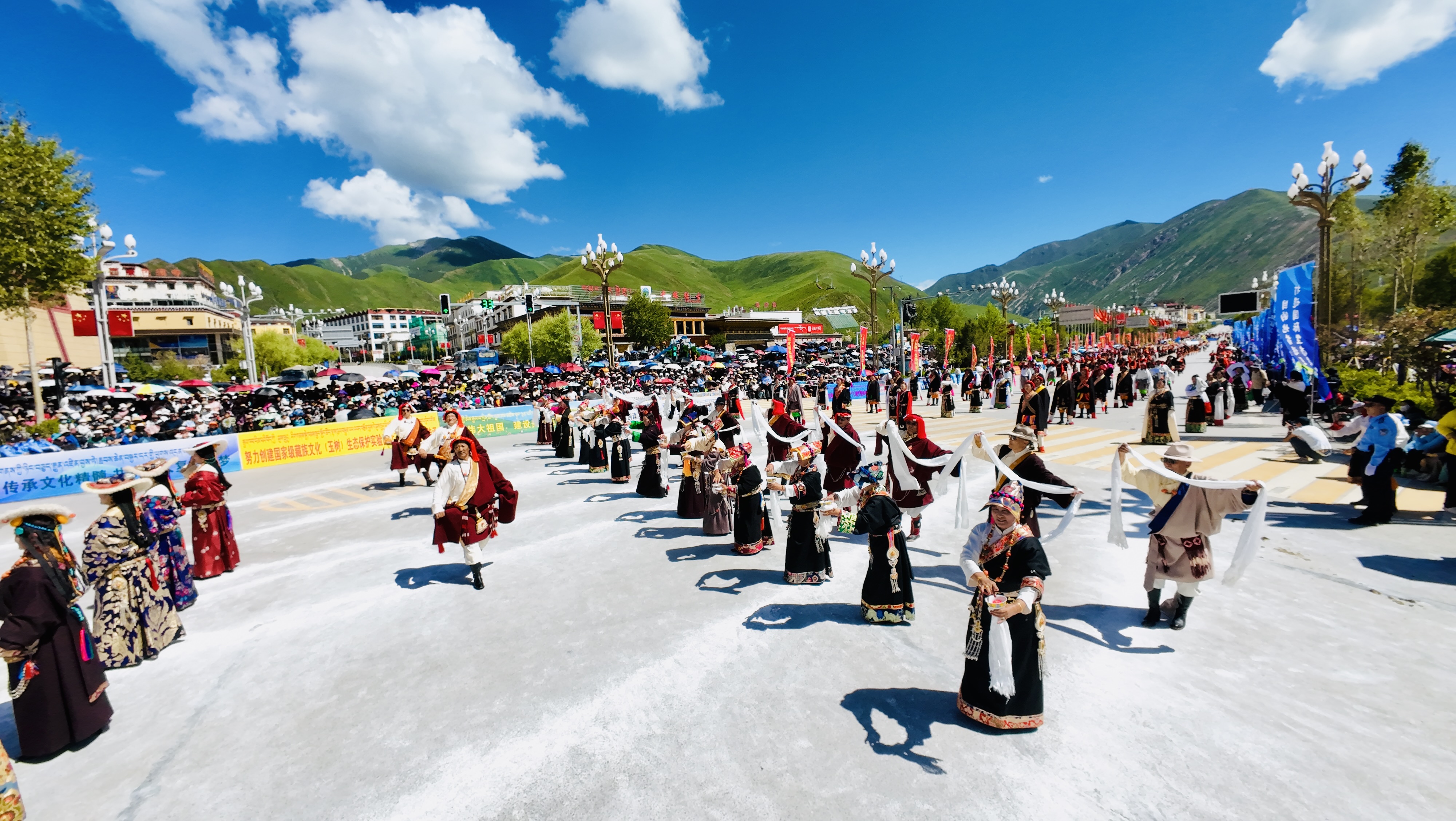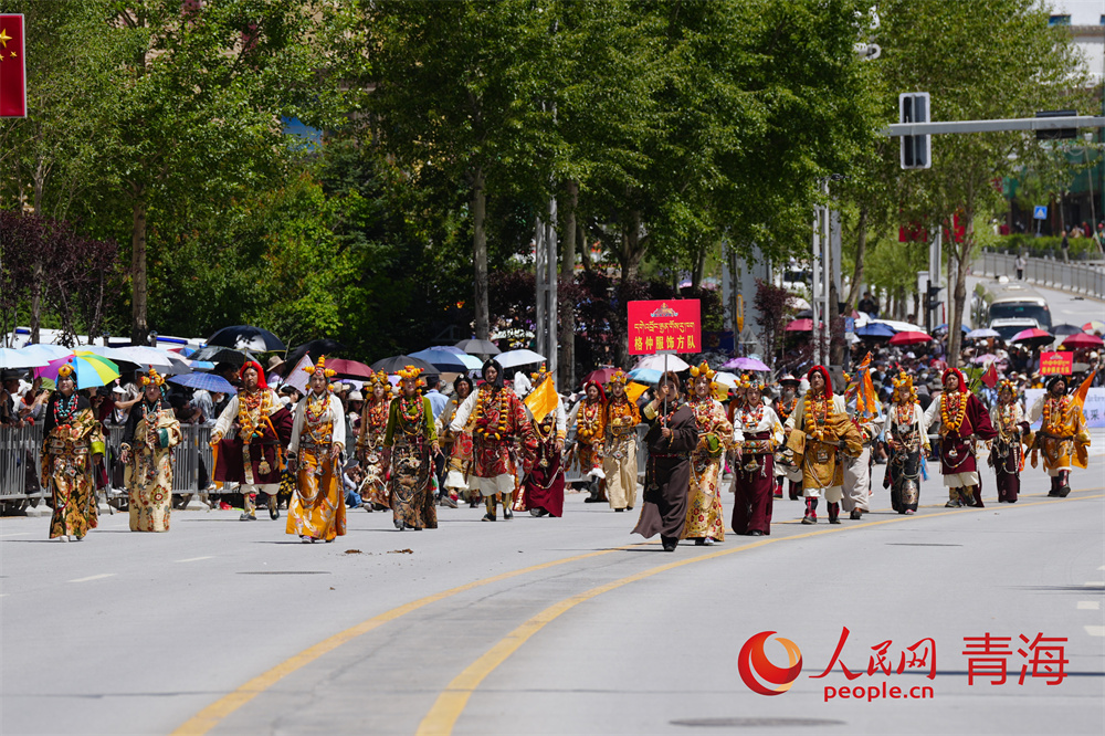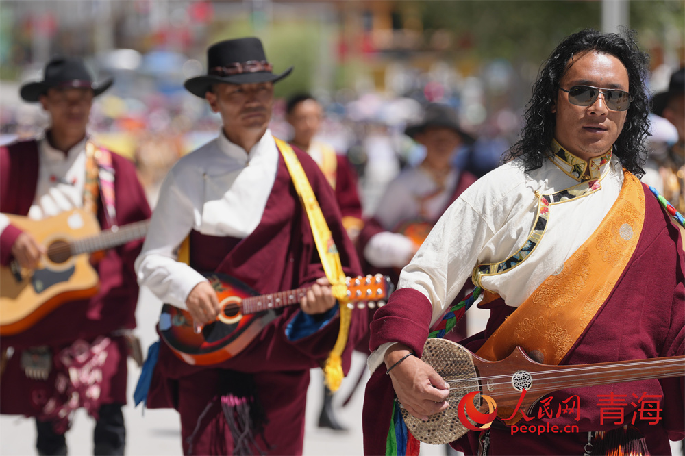 巡演現(xiàn)場,玉樹馬術方隊、康巴漢子方隊、伊舞方隊、藏族彈唱方隊、格仲服飾方隊、游牧方隊、玉樹州非物質文化遺產(chǎn)傳承人方隊等輪番登場,形式多樣的非遺展演為廣大游客和當?shù)厝罕妿砹艘粓鲆曈X盛宴。