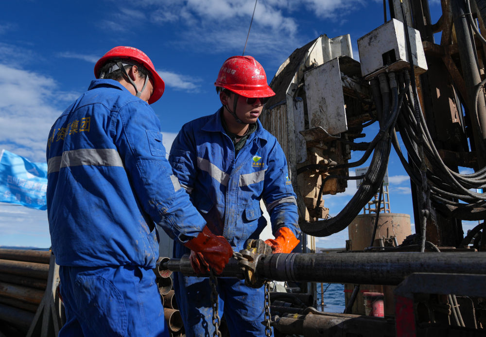 7月11日,鉆工劉文平在準(zhǔn)備拆卸鉆桿。新華社記者 晉美多吉 攝