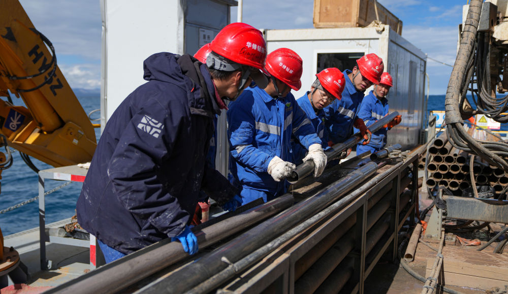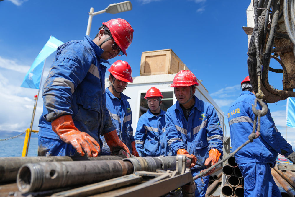 在海拔超過4700米的西藏納木錯(cuò)中心湖區(qū),21名來自五湖四海的鉆探專業(yè)技術(shù)人員,全天24小時(shí)輪班奮戰(zhàn)在面積僅200平方米的水上鉆探平臺上,協(xié)助第二次青藏科考科研人員提取湖泊巖芯樣品,這些樣本如同寶貝一樣,封存著青藏高原納木錯(cuò)地區(qū)百萬年來的環(huán)境氣候變化信息。 擔(dān)任這次湖泊巖芯鉆探任務(wù)的是四川資源集團(tuán)華鋒鉆探隊(duì)。他們從5月31日入駐科考營地、6月6日鉆取第一批湖泊巖芯樣品以來一直奮戰(zhàn)至今。這群平均年齡31歲的鉆探隊(duì)員常年工作在高海拔地區(qū),有著豐富的鉆探經(jīng)驗(yàn),此次鉆探是他們第一次進(jìn)行高海拔湖泊鉆探。目前納木錯(cuò)鉆探深度突破400米,達(dá)到國內(nèi)高海拔深水大湖的鉆探新紀(jì)錄。這些鉆探隊(duì)員在見證奇跡,也在創(chuàng)造歷史。