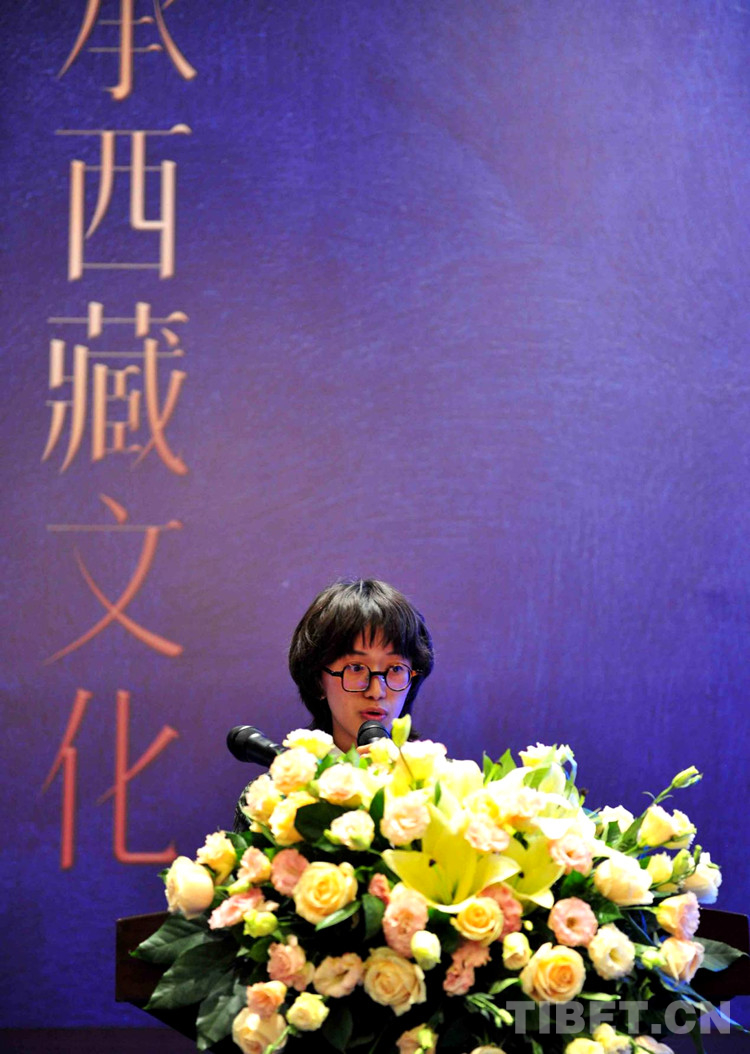 圖為第九屆“地球第三極·西藏禮物”旅游文創(chuàng)商品大賽頒獎(jiǎng)儀式現(xiàn)場(chǎng)銀獎(jiǎng)獲得者——西藏三界文化發(fā)展有限公司的格桑卓瑪作為獲獎(jiǎng)代表進(jìn)行發(fā)言攝影:拉姆